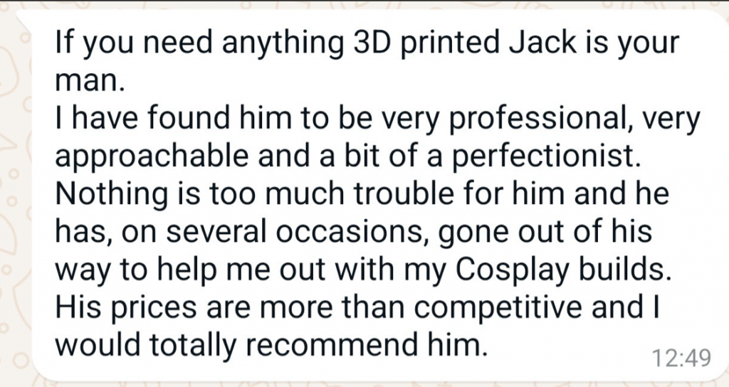 Review from juan who makes amazing props, costumes and Vehicles for charity events